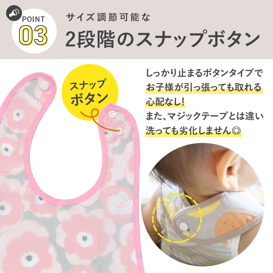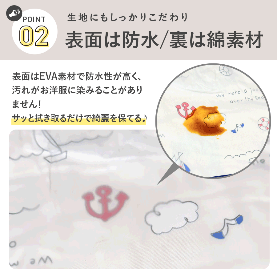 ・ポケットがあるので食べこぼしをしっかりガード。