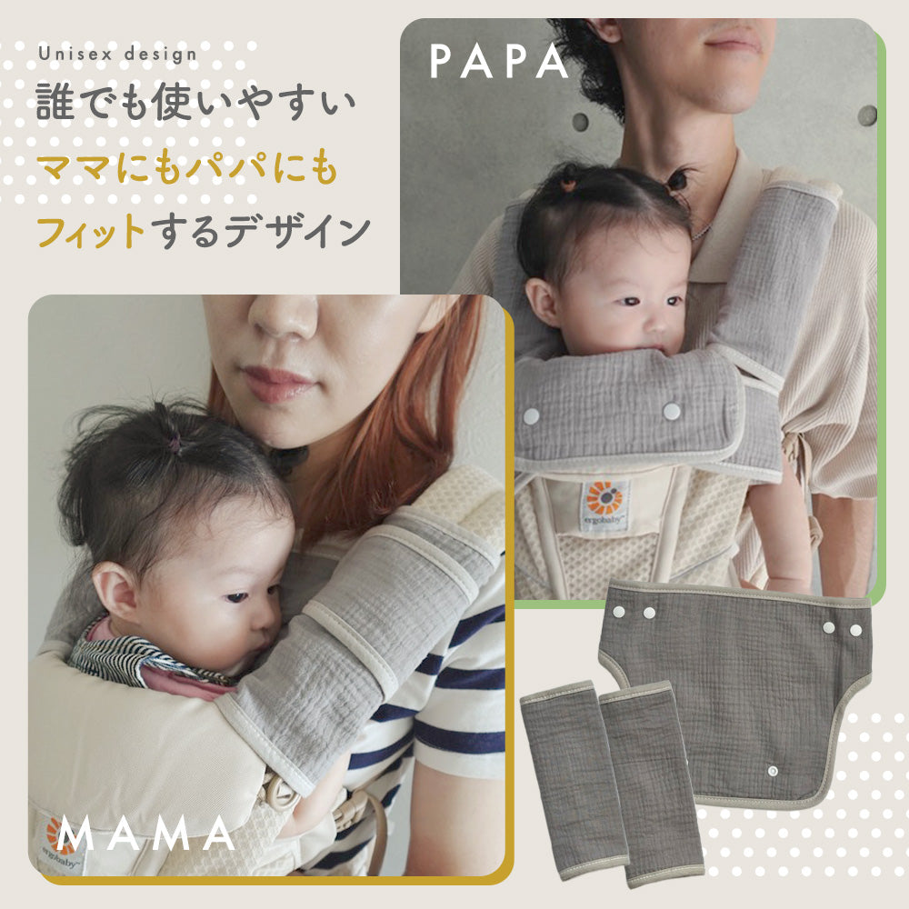 ・抱っこ紐だけではなく、ベビーカー、チャイルドシートなどにもお使い頂けます。使い方次第で幅が広がる便利なアイテムです。
