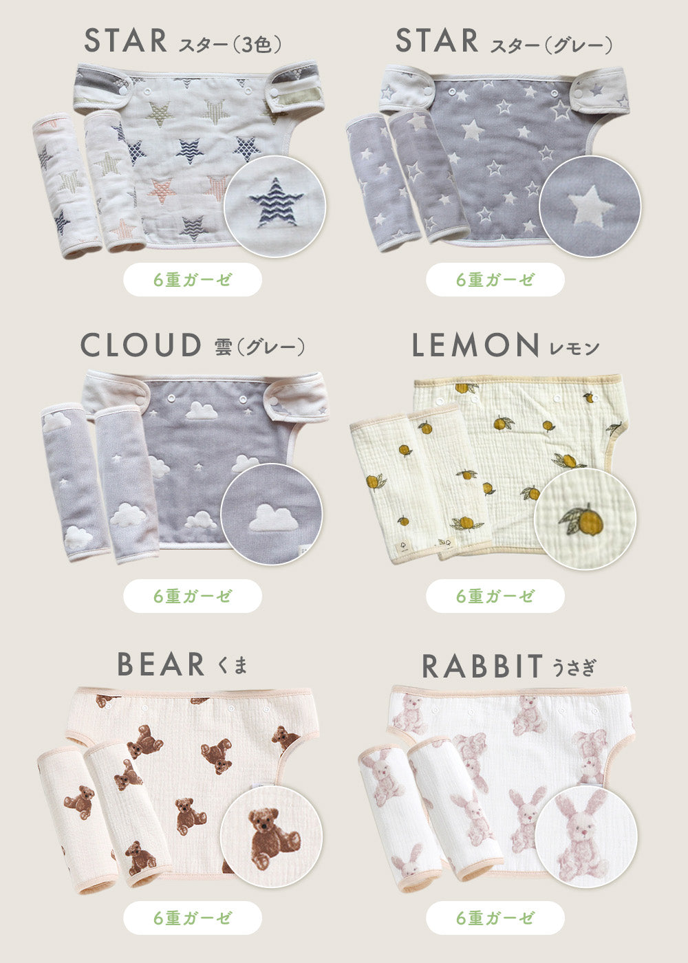 ・6層ガーゼで吸収性・速乾性抜群!