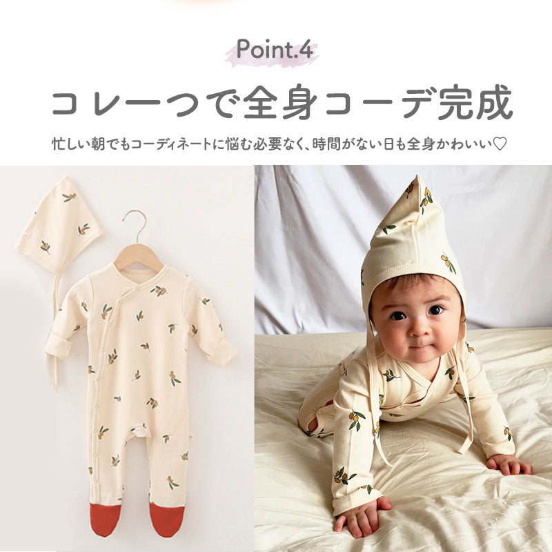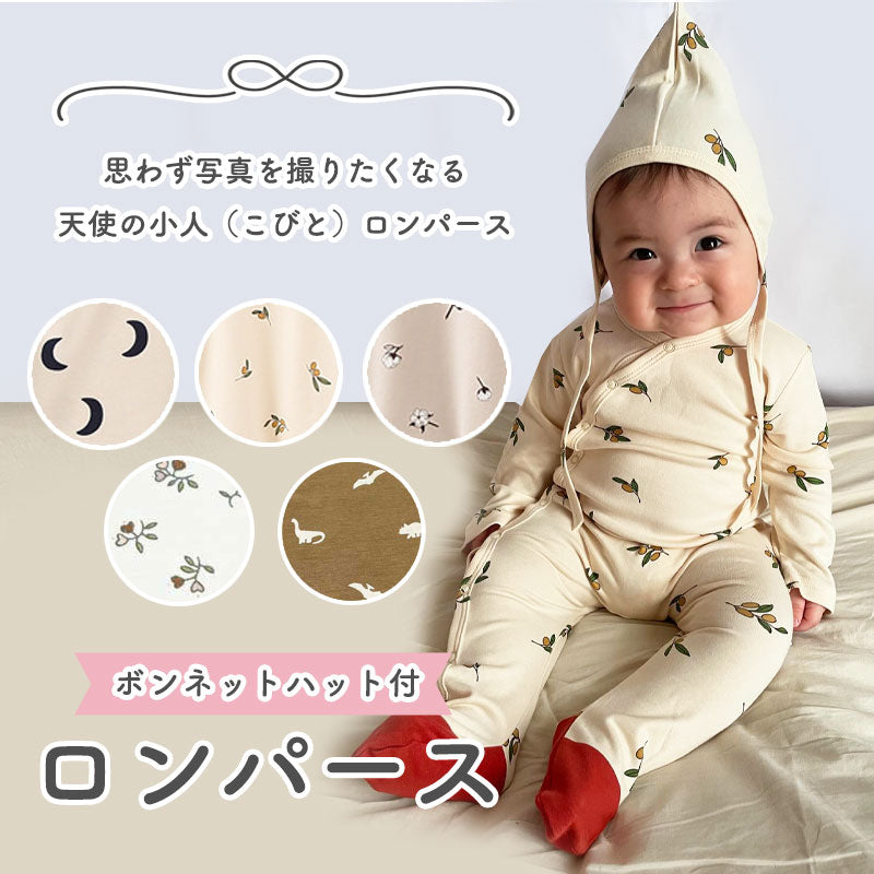 SNS映えしちゃうキュートなボンネットハット付きロンパース。