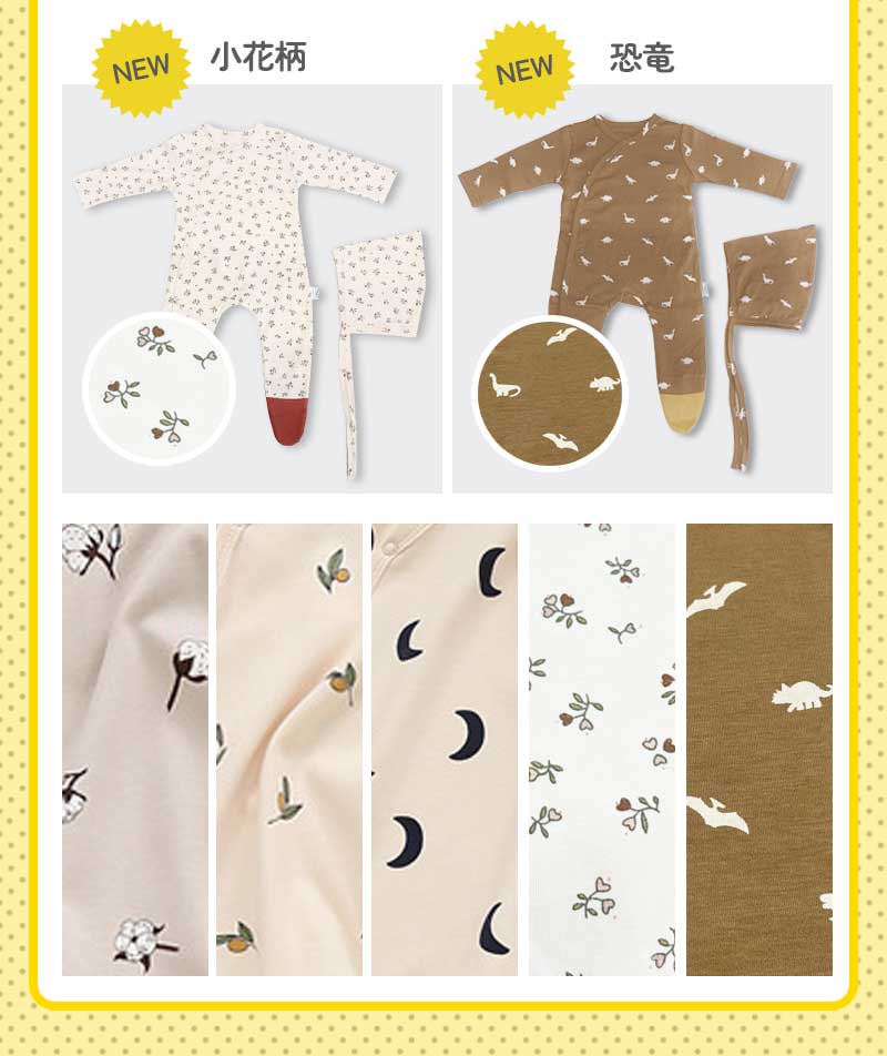 首元から足首まで大きく開けれるので、寝たままおむつ替えができ、着替えもらくらく♪スナップボタンを採用しているので開閉も簡単に出来ます。