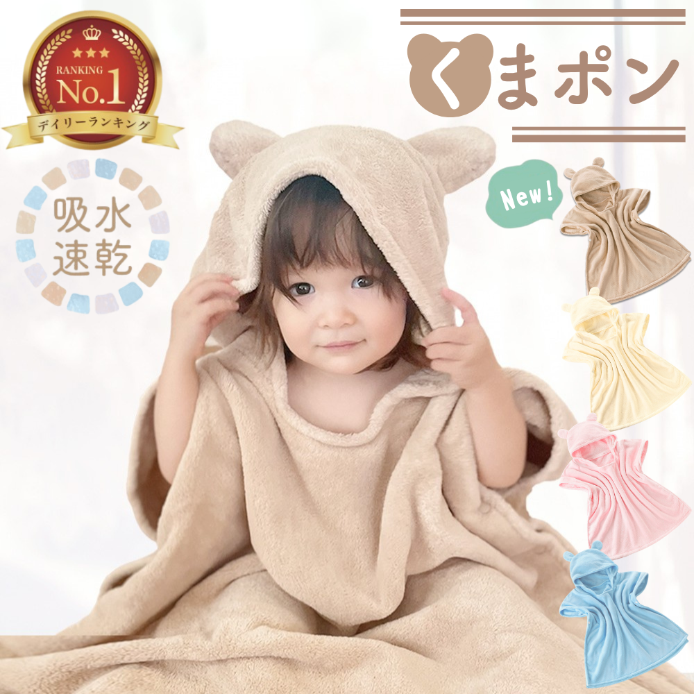 ・クマ耳が可愛いフード付きバスタオル♪