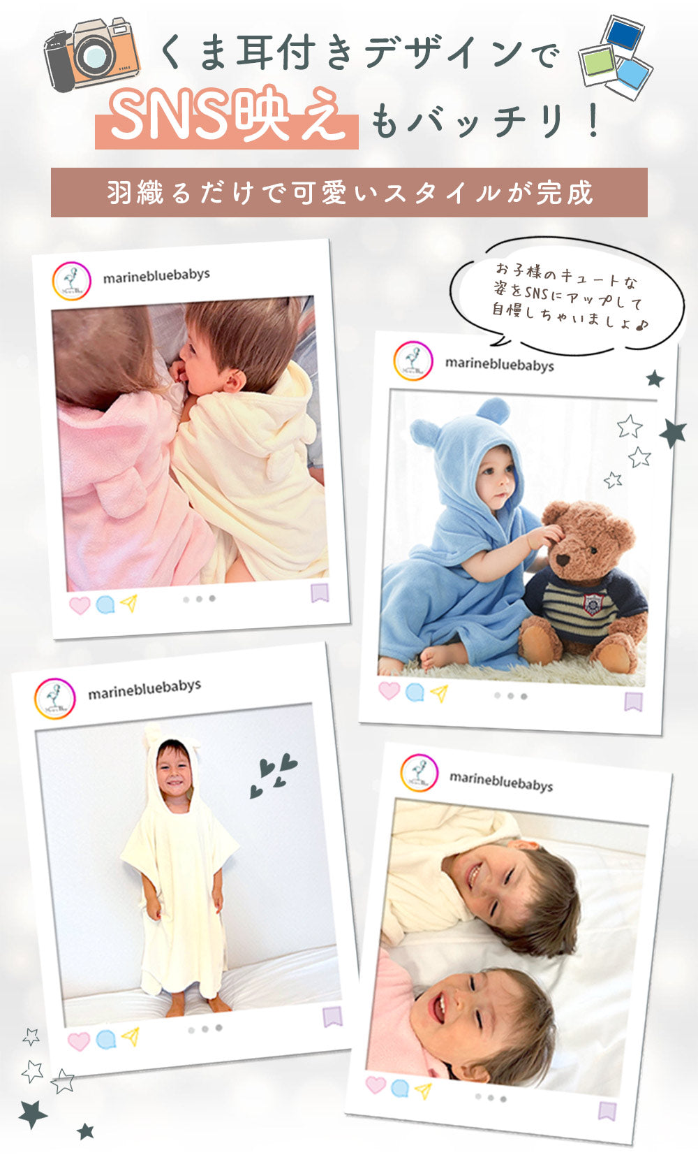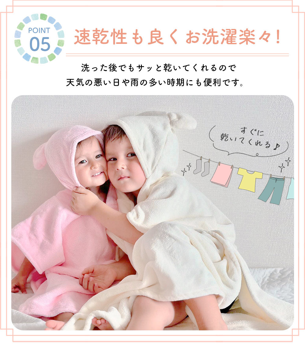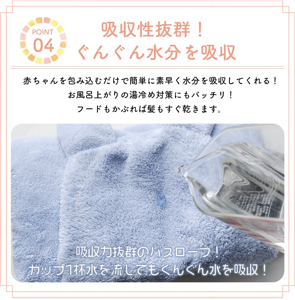・何かとバタバタするお風呂の時間でもこれ一枚あればお子様の湯冷めの心配はありません。