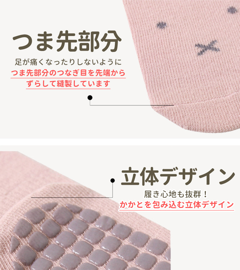 ・コットンを主に使った優しい肌触りの生地を採用し、つま先かかとなどは立体縫製デザイン!履き心地も抜群!伸縮性もよくくるぶし回りなどフィット感を高める仕様になっており、靴下が脱げにくくなっています。