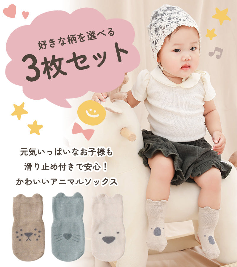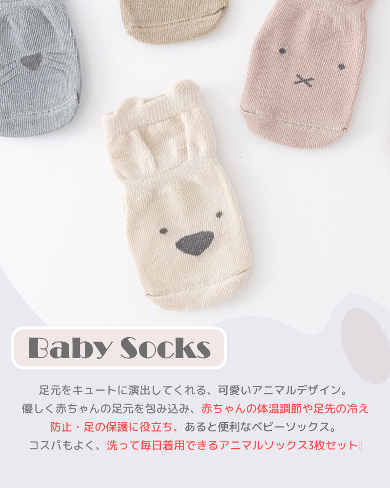 ベビーアニマルソックス3枚