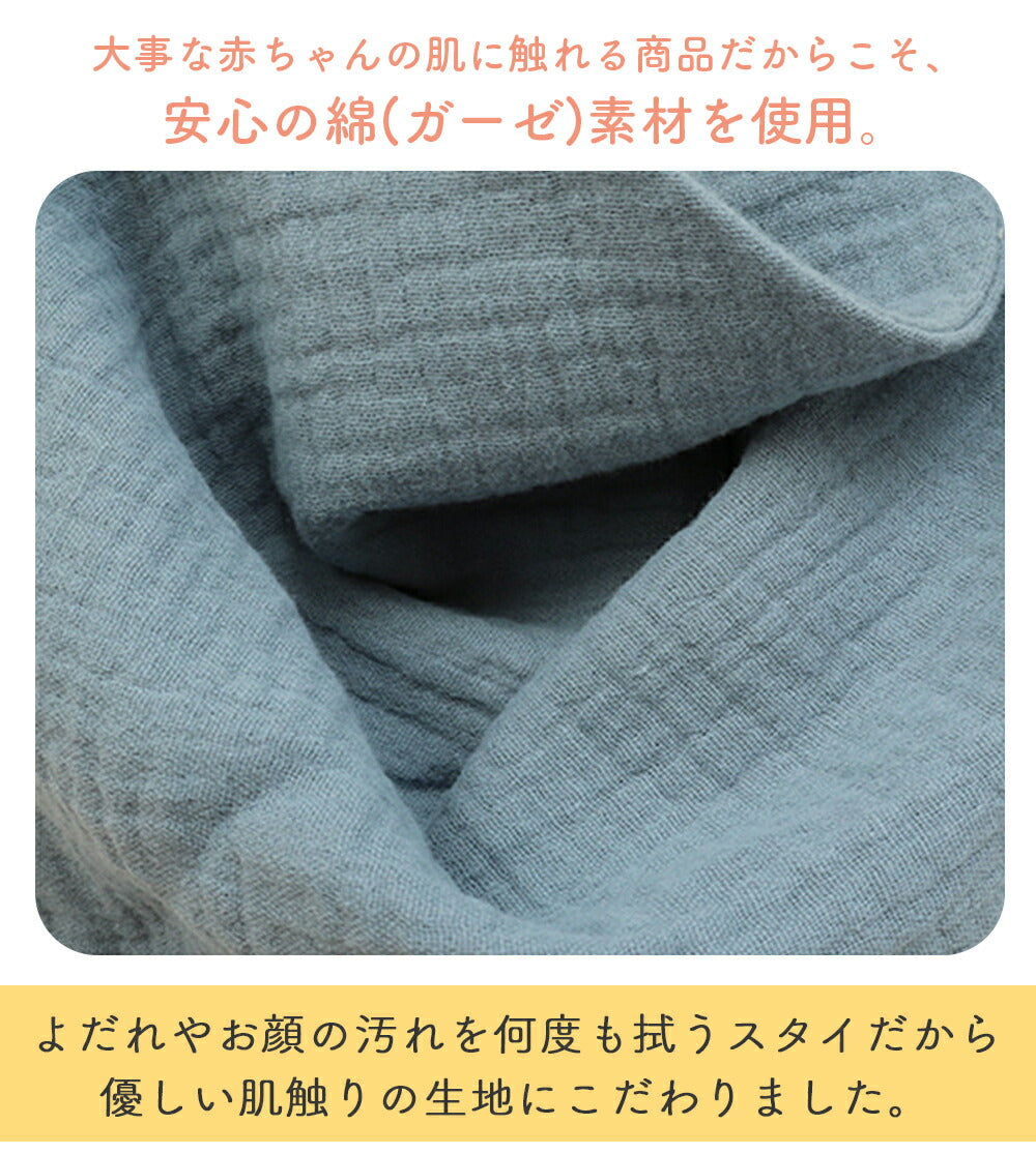 ・赤ちゃんに触れる商品だから安心の綿(ガーゼ)素材を使用。