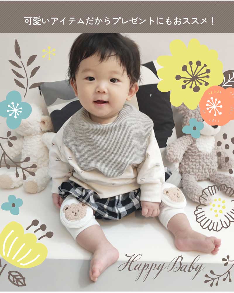 ・ハイハイしたての赤ちゃんの膝が摩擦で赤くなったり、ガサガサしたりしてるのが、気になるママにおススメ!着用するだけで膝を優しく保護する膝パッド。