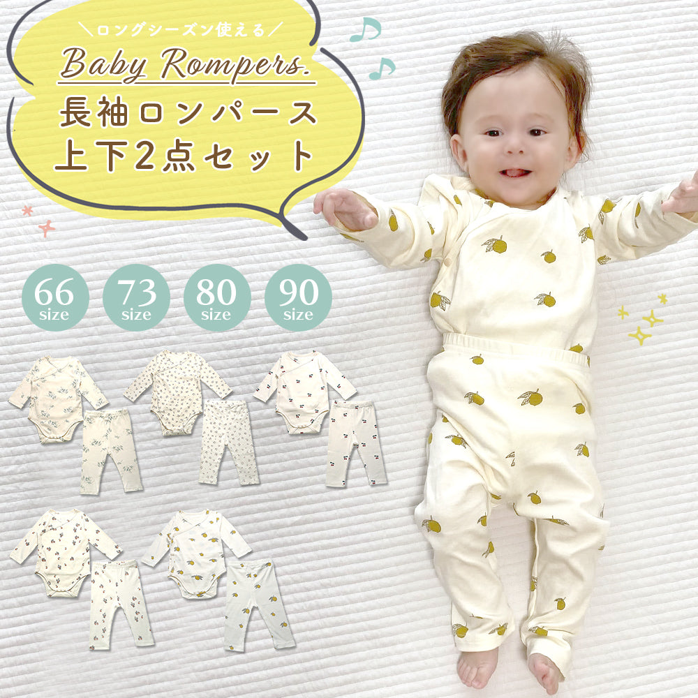 ・ロングシーズン使える!長袖ロンパース上下2点セットです。