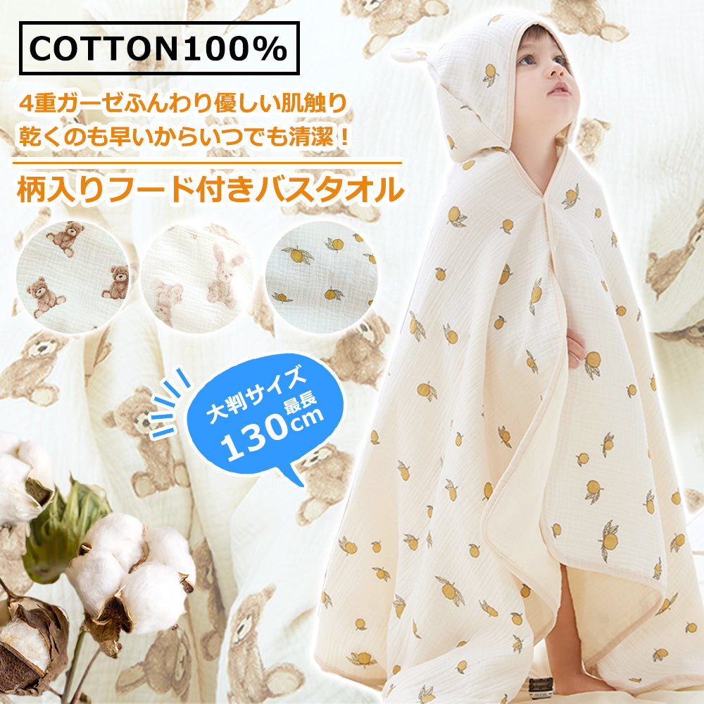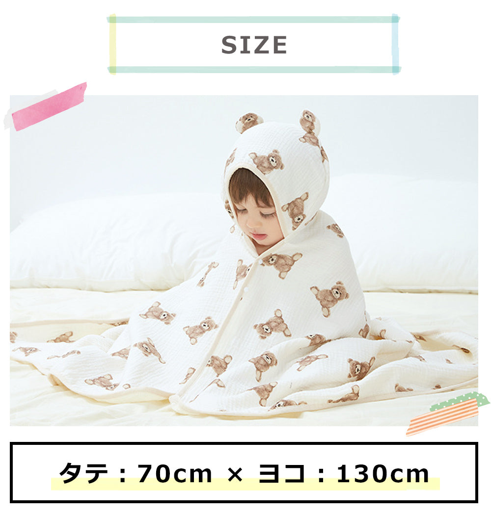 ・クマ耳とナチュラルなデザインが可愛いフード付きバスタオル♪