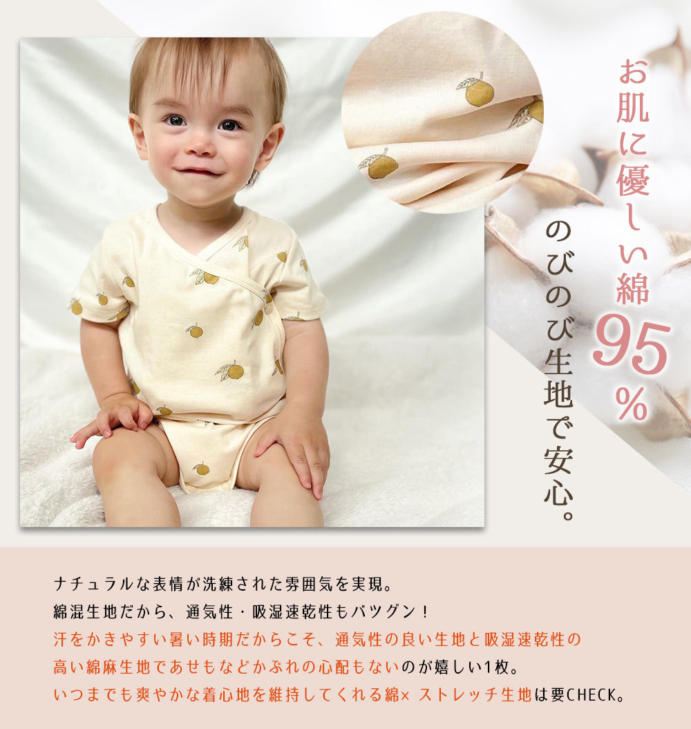 ・股部分もスナップボタンだからオムツ替えが楽ちんなのもママに嬉しいポイント♪