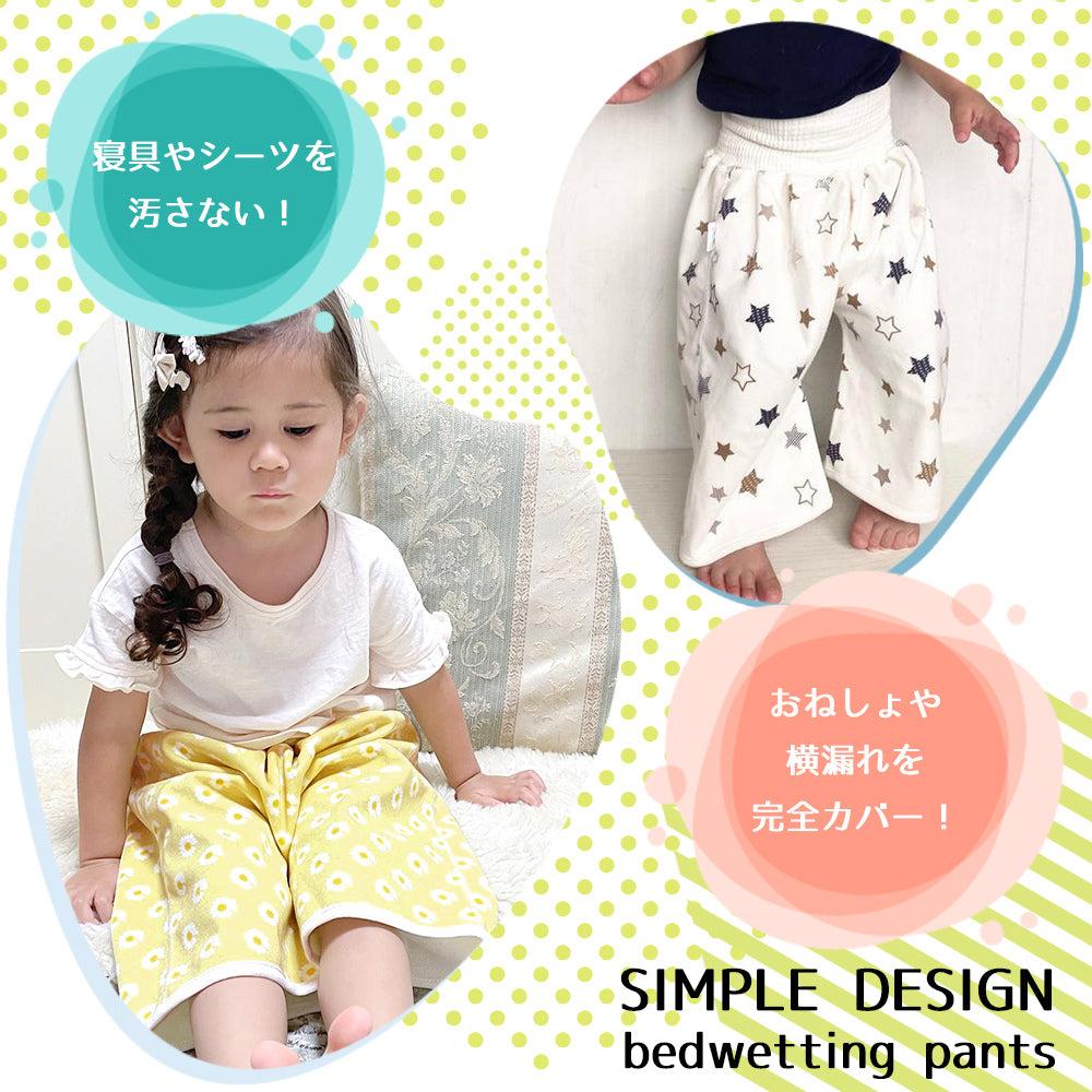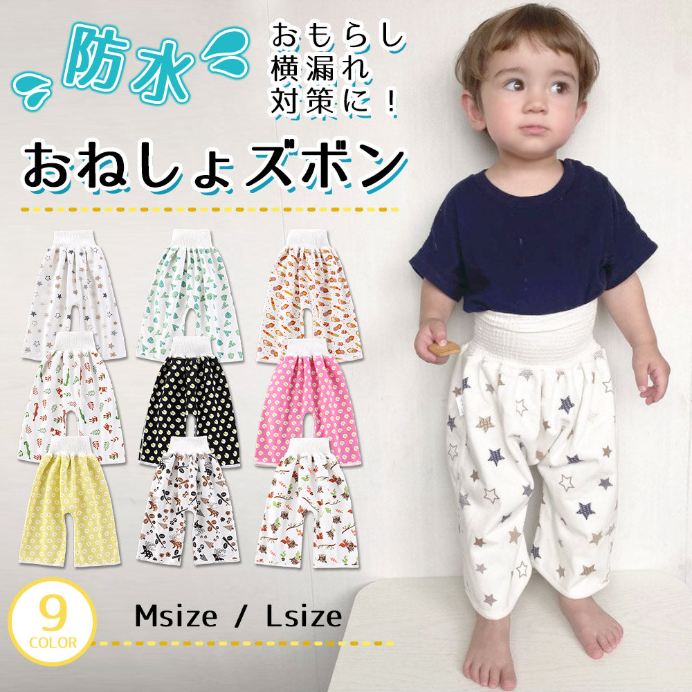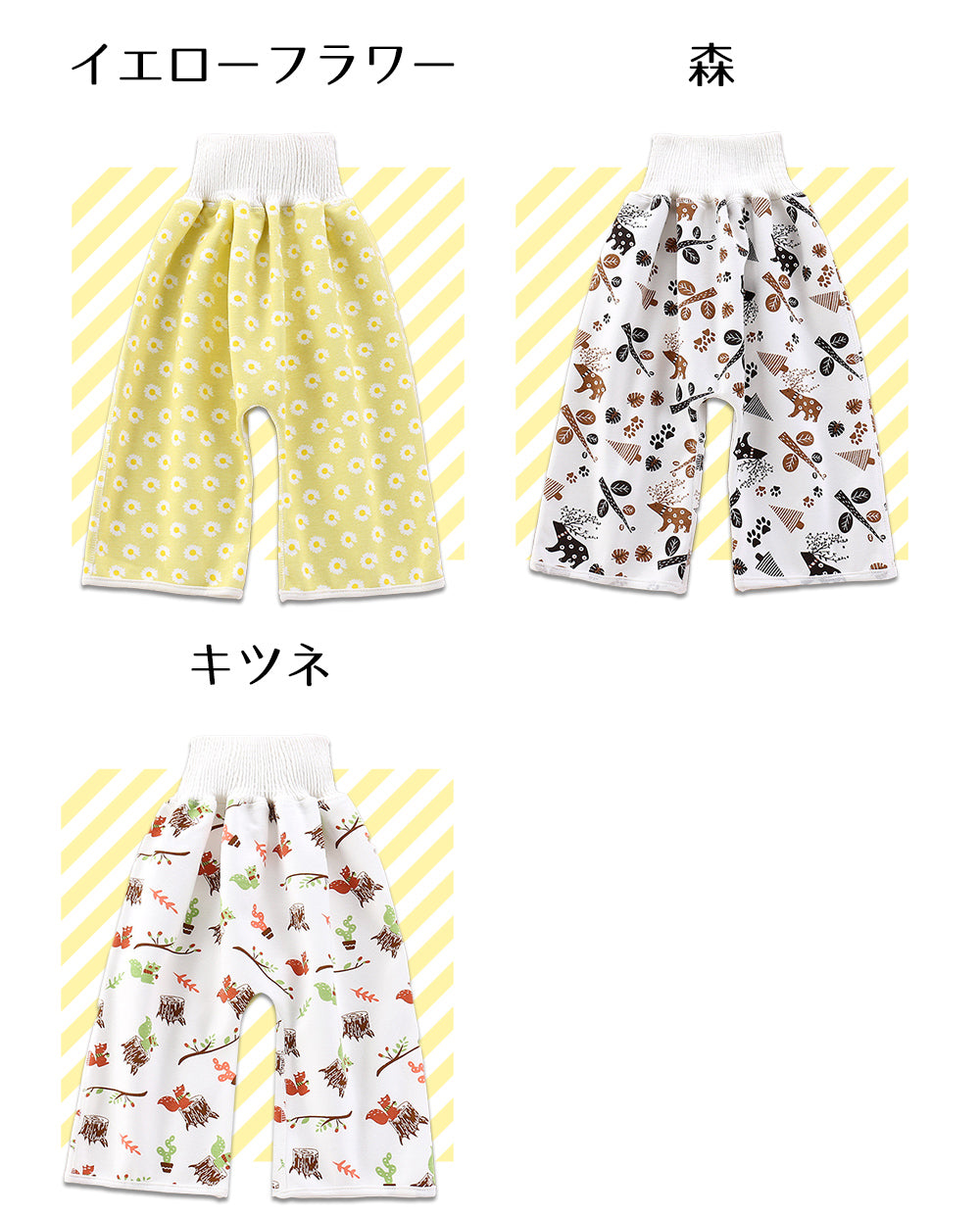 ・トイレトレーニングのサポートに!防水加工された、おねしょズボンを着用すれば、就寝時のおねしょの漏れを軽減でき、洗濯ものなどを減らす事ができます。