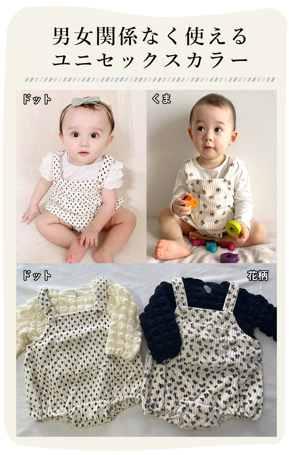 ・股部分はスナップボタンなのでオムツ替えも楽々。