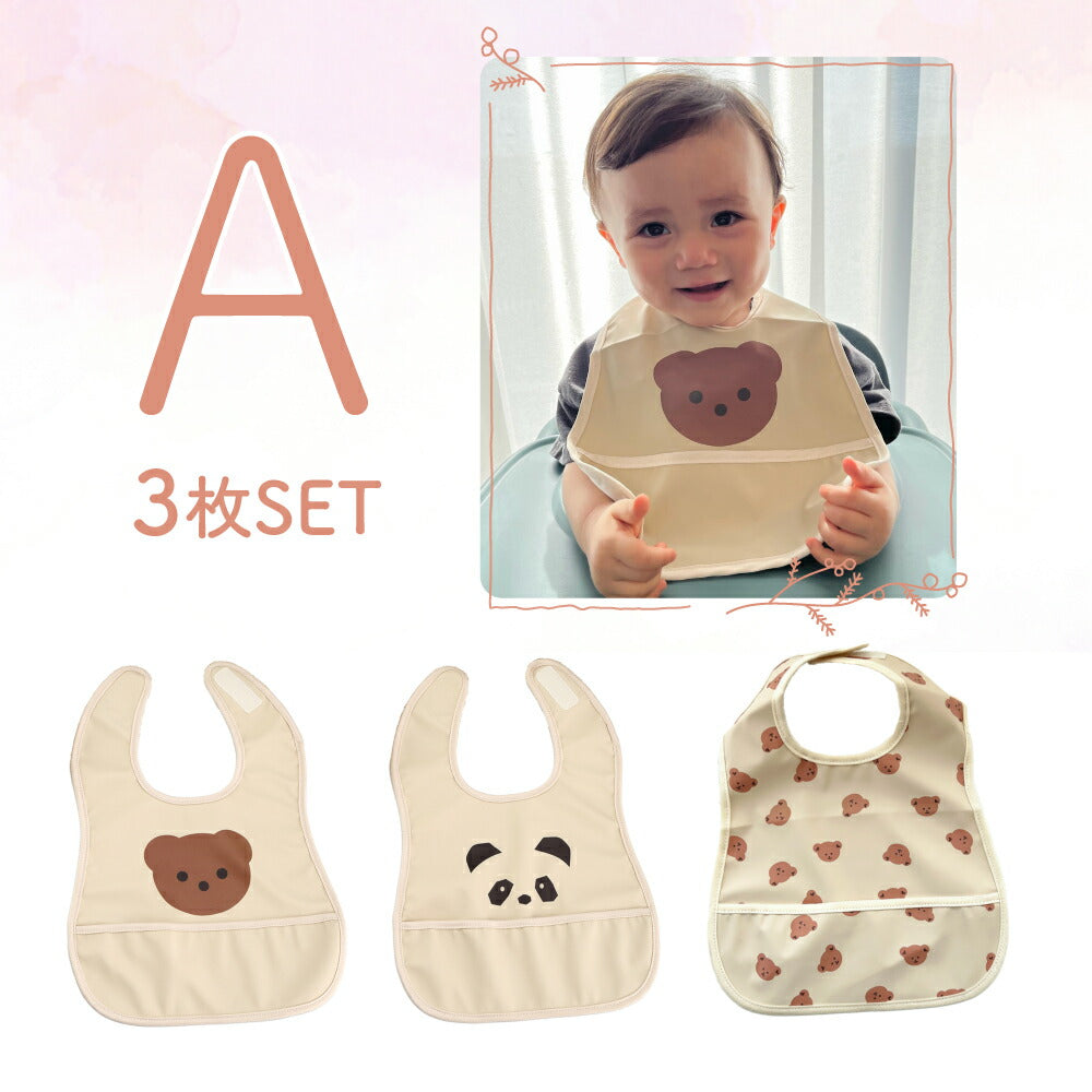 ・【お得な3枚セット】ナチュラルで可愛いお食事エプロンです。