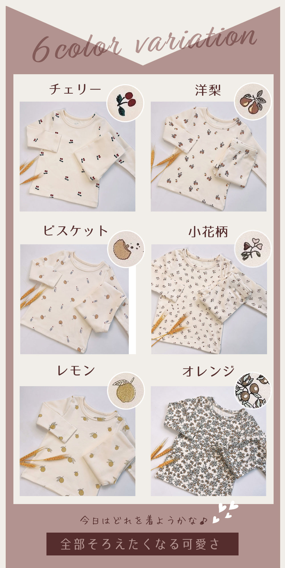 小花柄・レモン・洋梨・レモン・チェリー・オレンジ・ビスケット