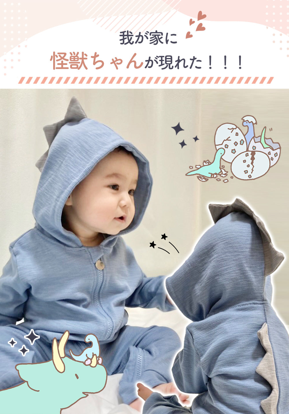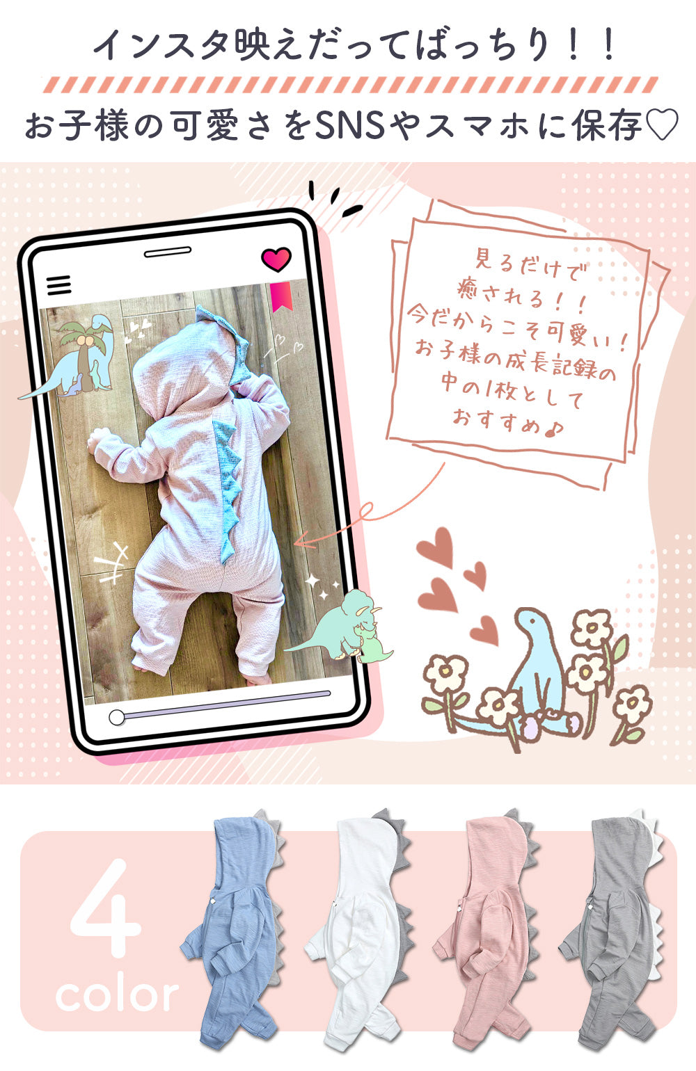・恐竜のデザインがとっても可愛いロンパース♪SNS映えもバッチリ☆