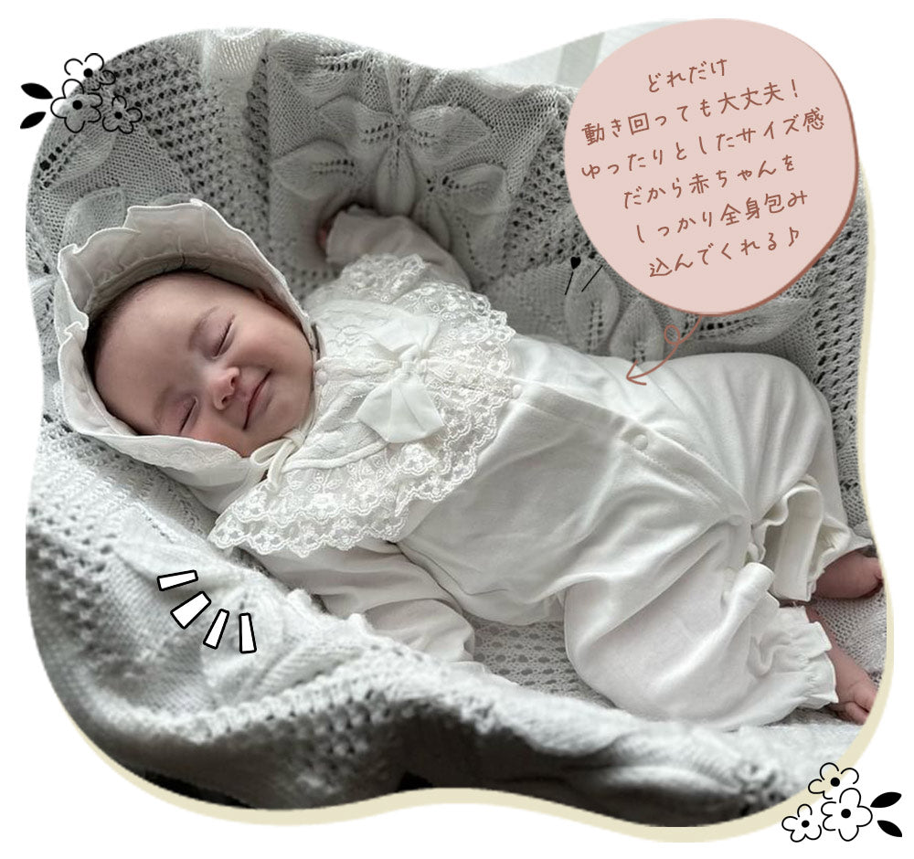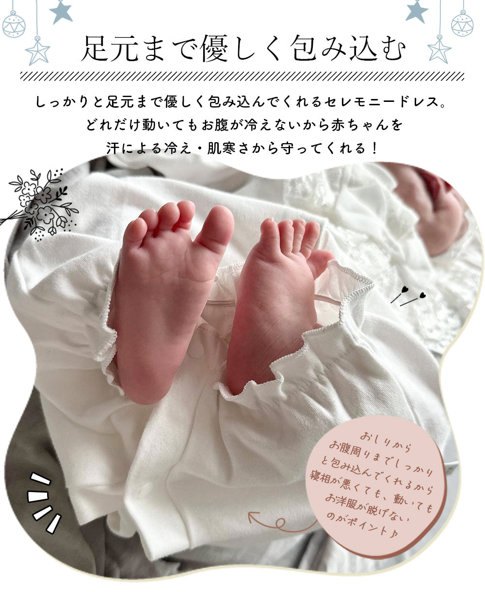 ・きちんと感のあるセレモニードレスなので写真撮影用はもちろん、新生児の退院着やお宮参り等にピッタリ◎