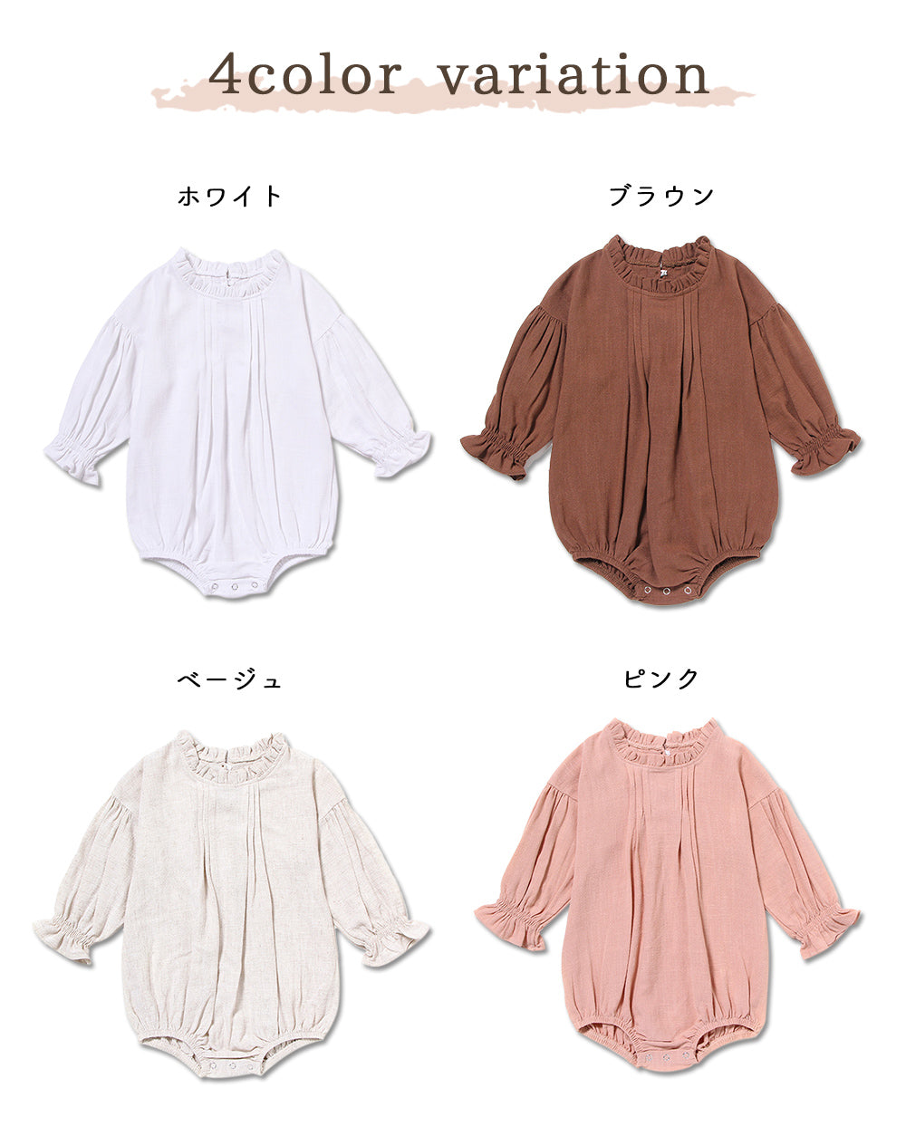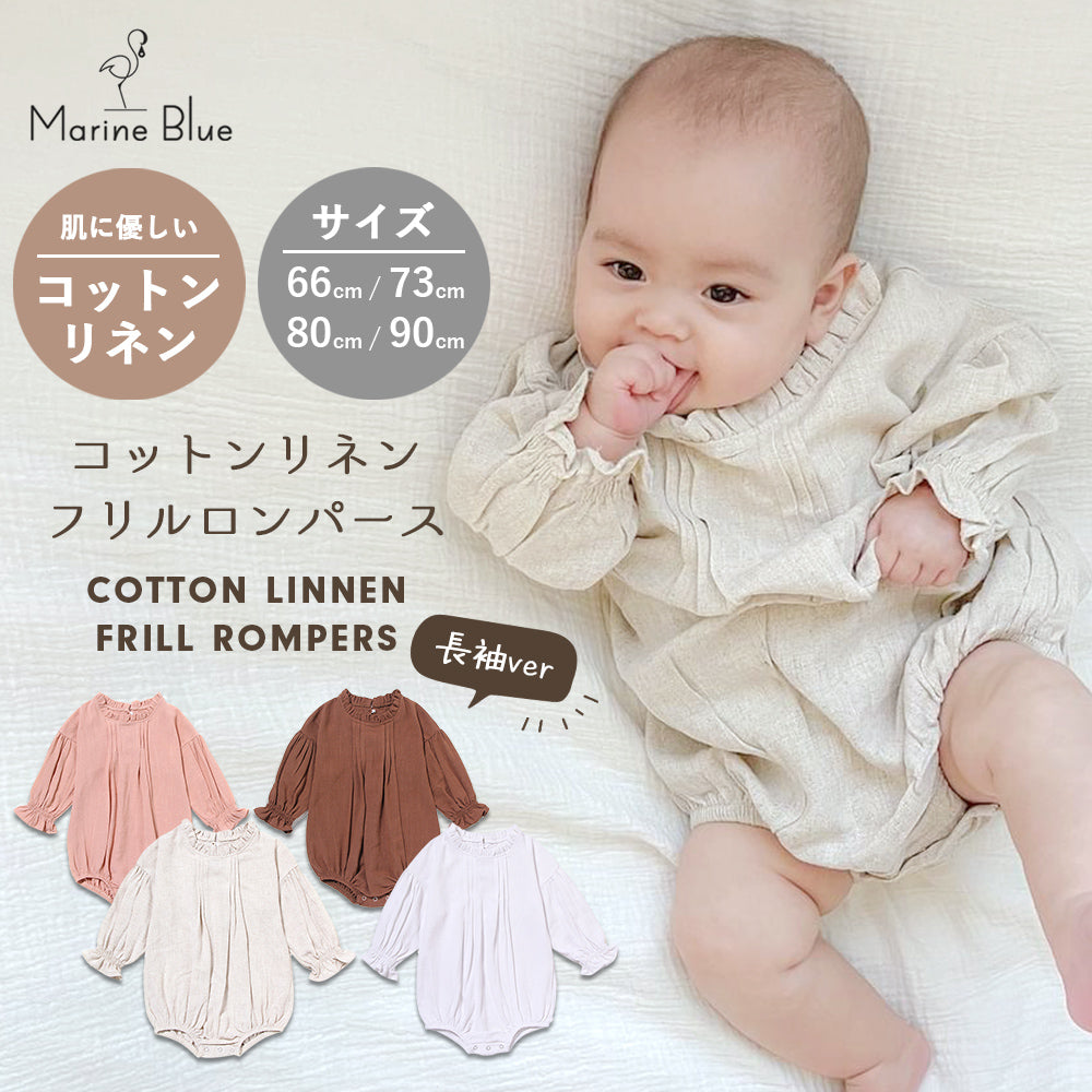 襟袖フリル長袖ロンパース