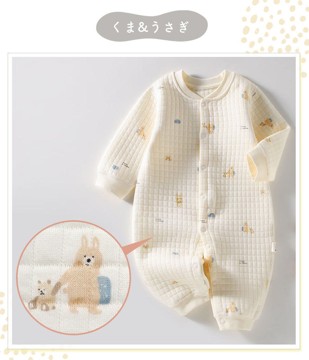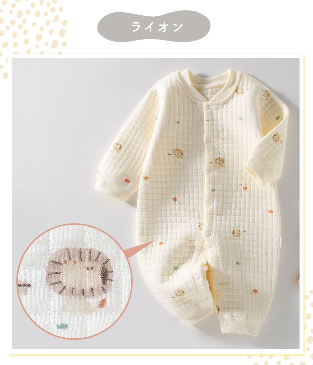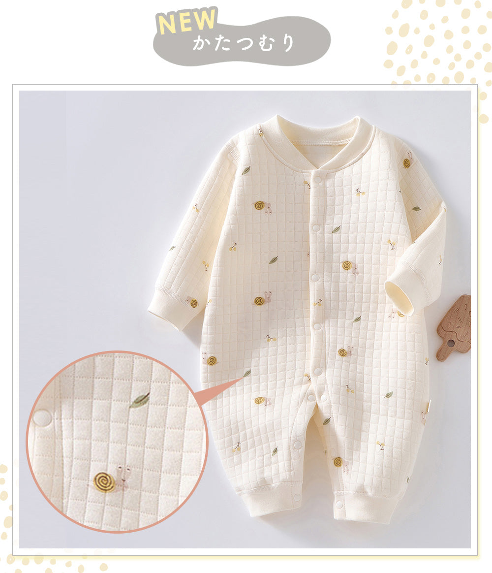 ・ナチュラルな総柄が可愛いパイピングロンパース
