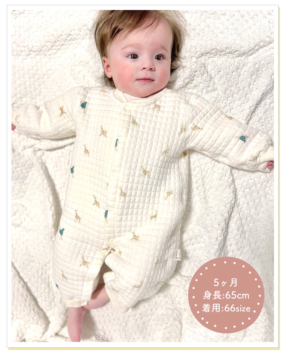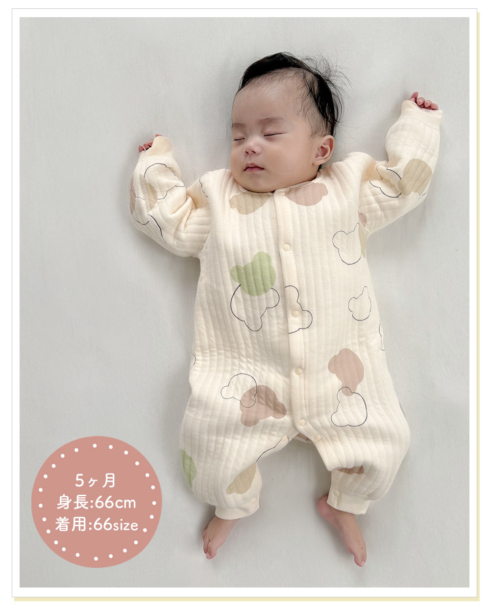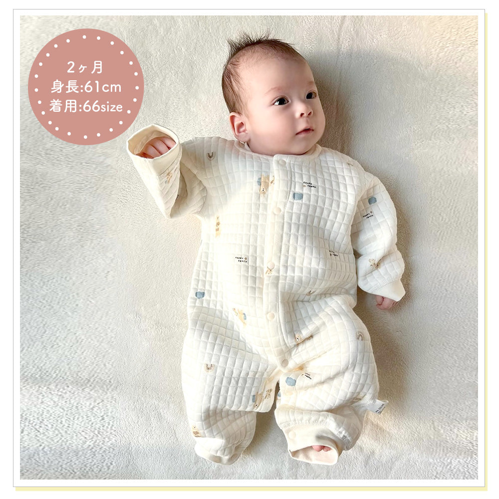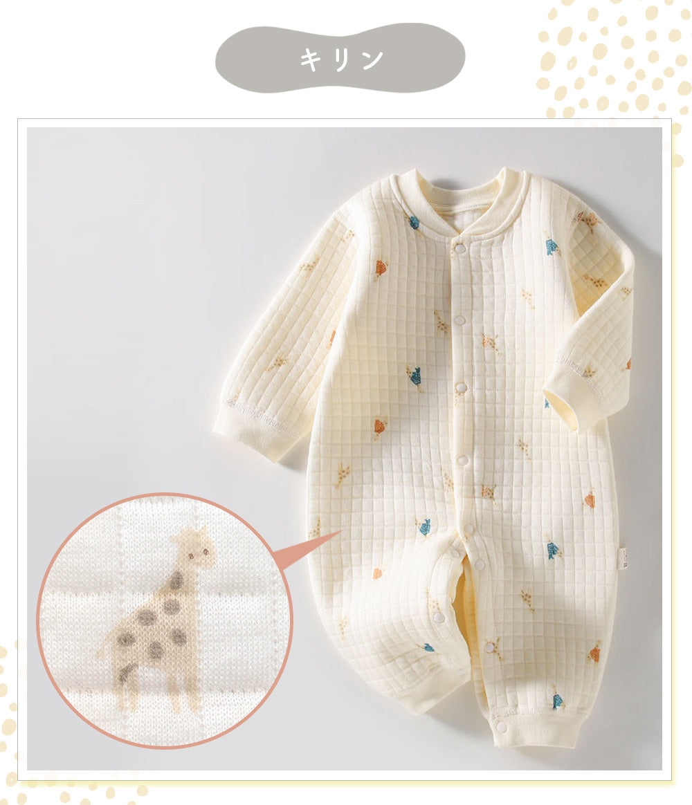 ・ナチュラルな総柄が可愛いパイピングロンパース