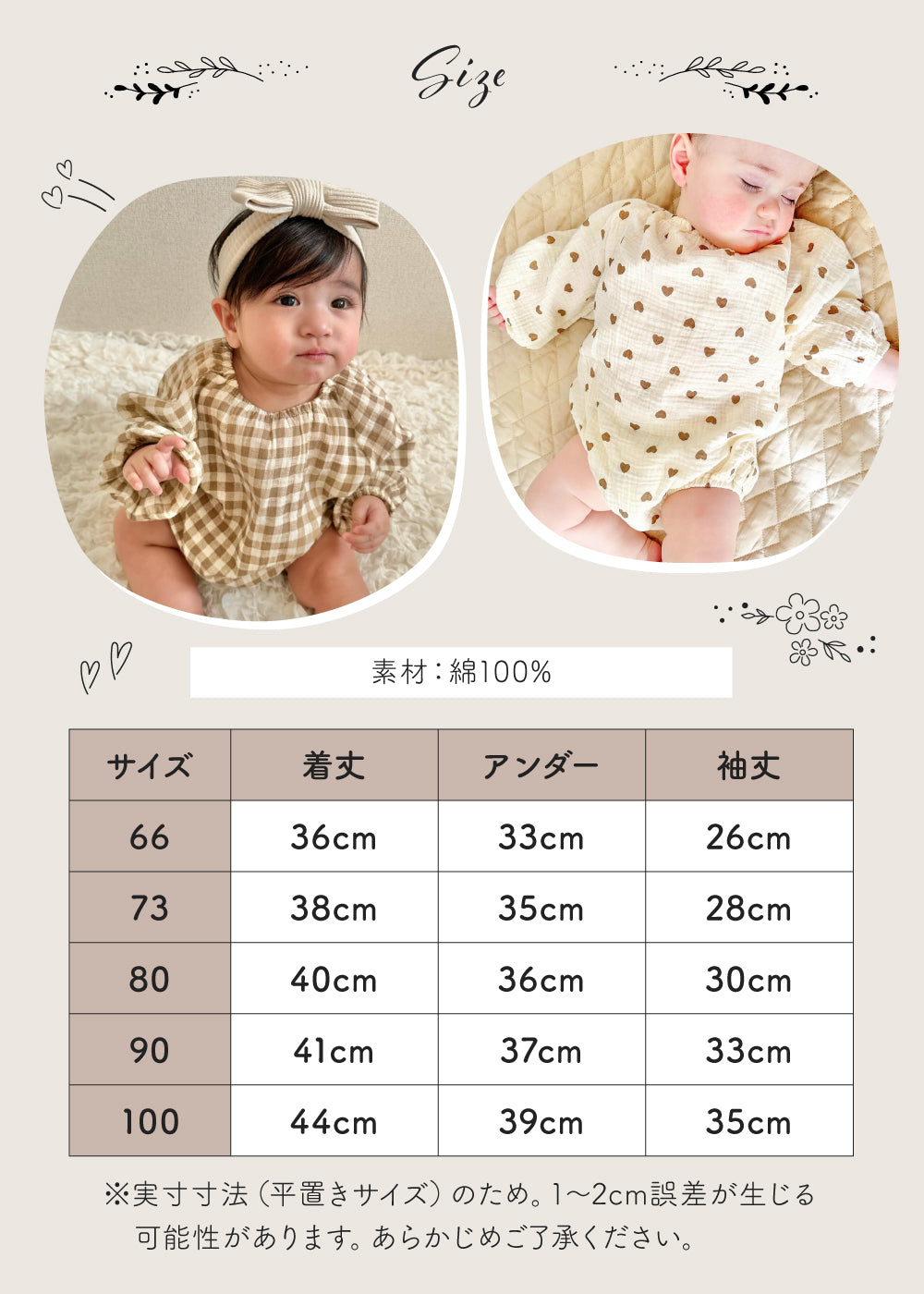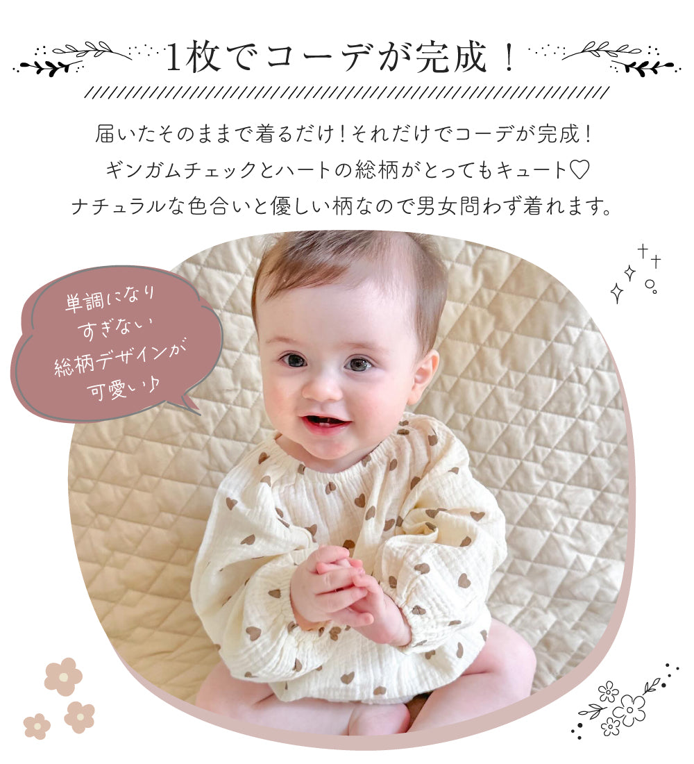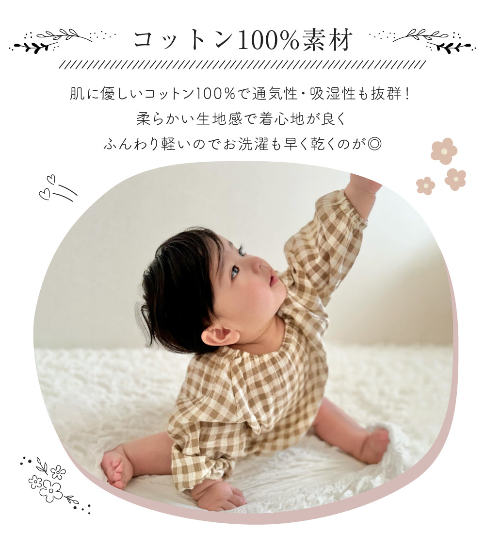 ・ナチュラルな総柄デザインが可愛いロンパース♪