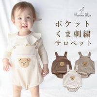 ポケットくま刺繍サロペット