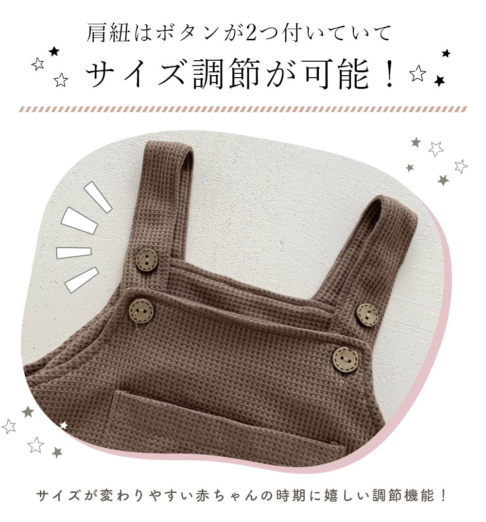 ・胸ポケットのくまちゃんワッペンが可愛いワッフルサロペット♪