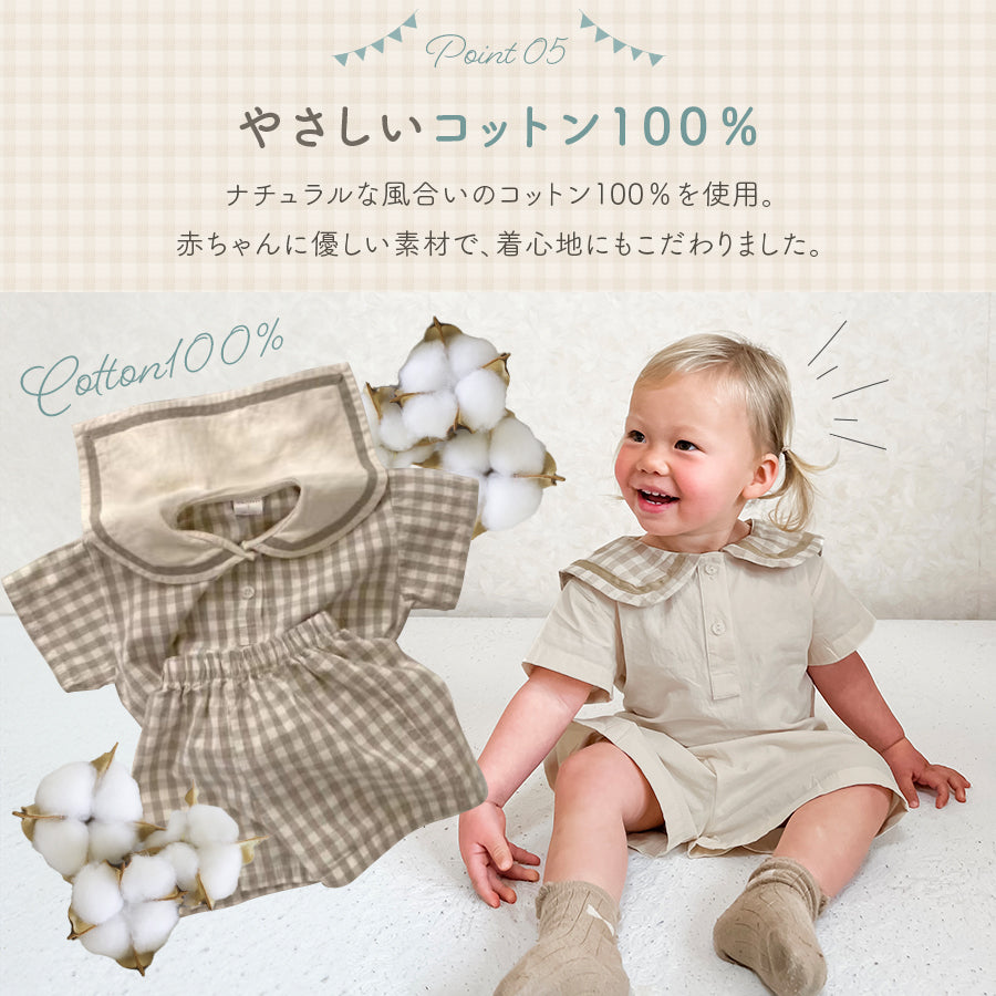 ・胸元にはボタンが2つ付いているのでお着替えのときも簡単に着脱できます。