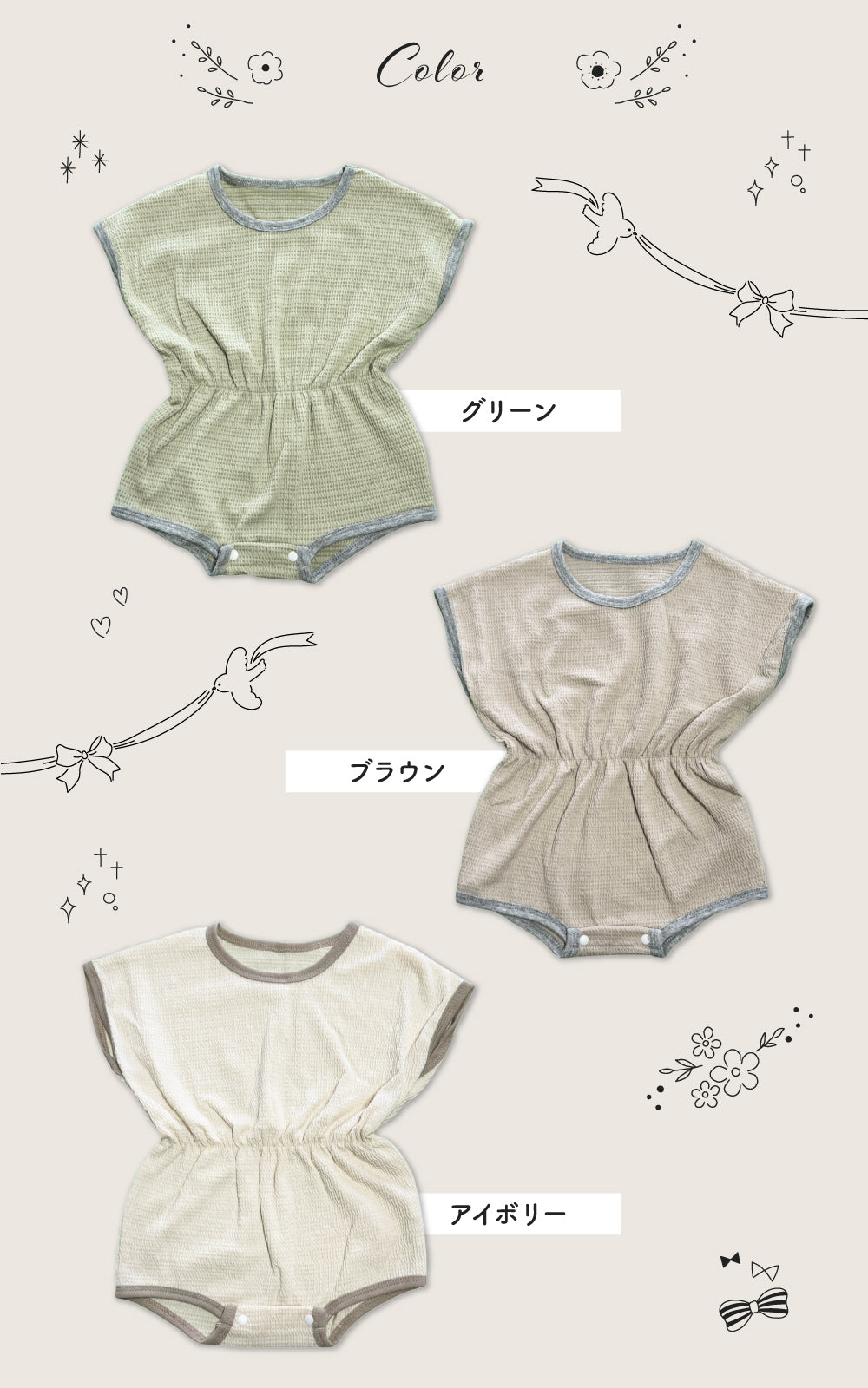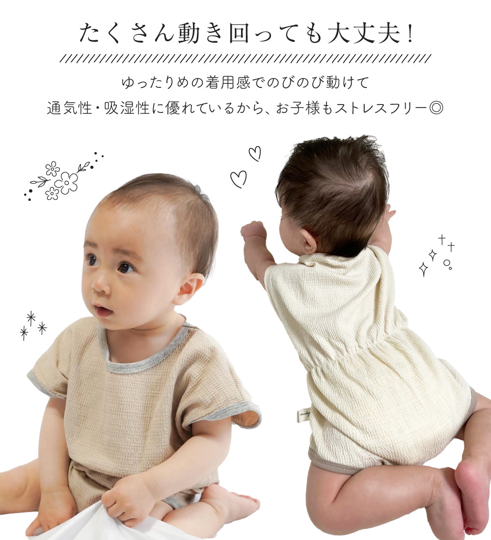 ・おむつ替えに便利な股下スナップボタン付きです。