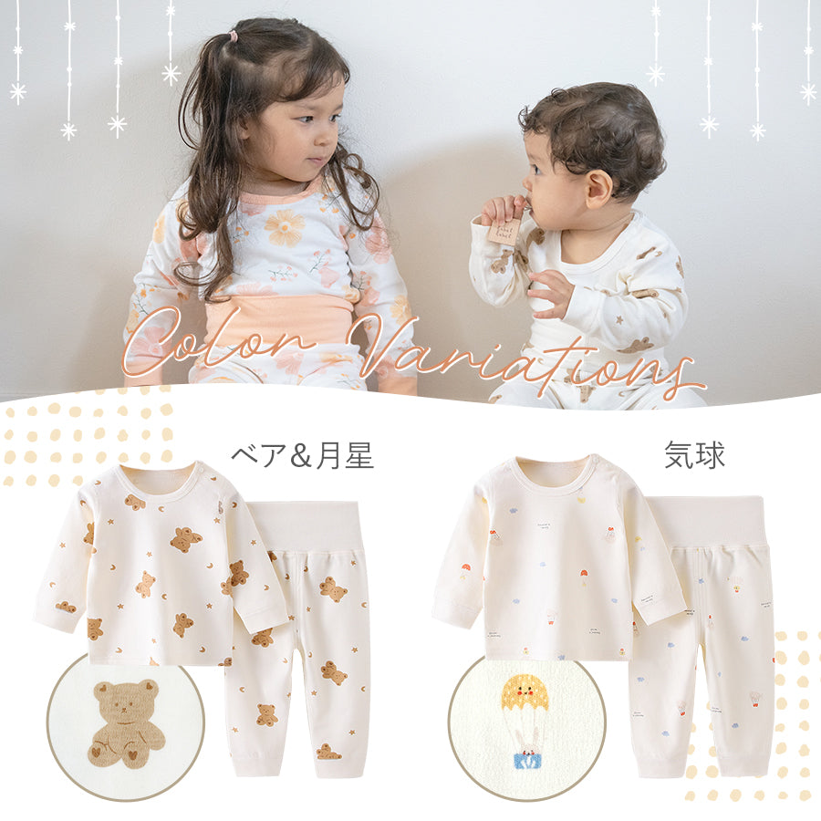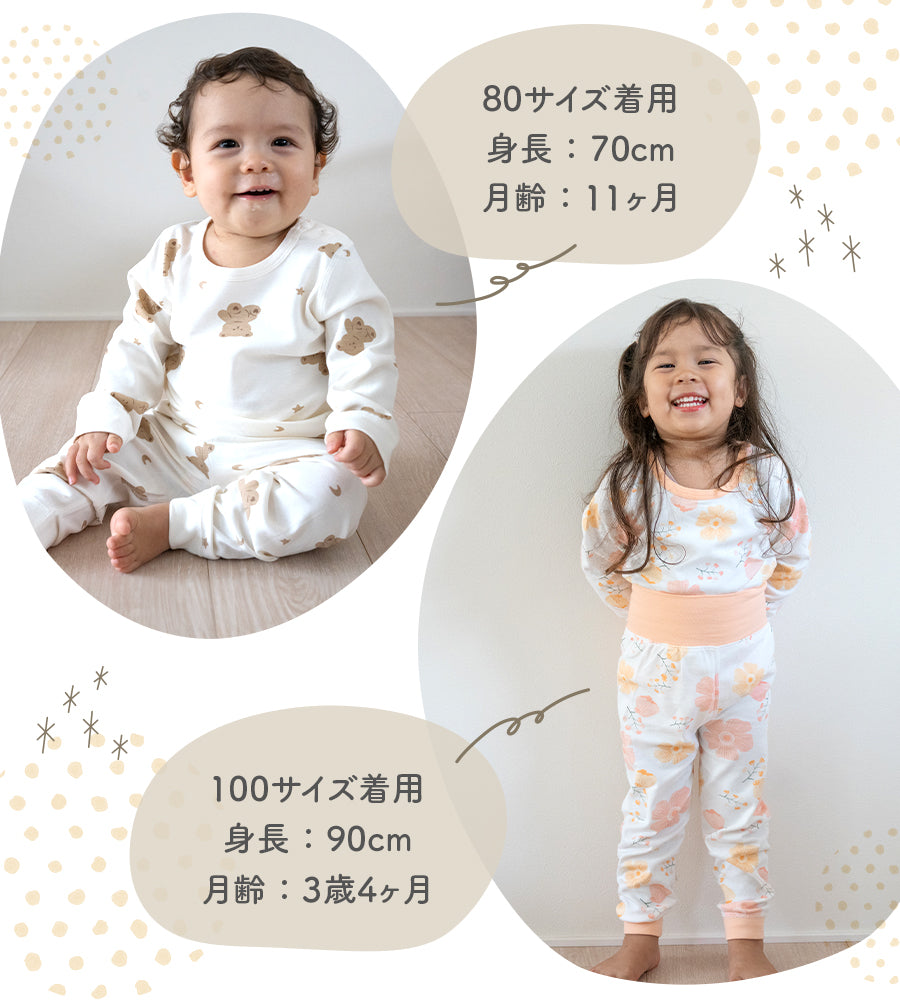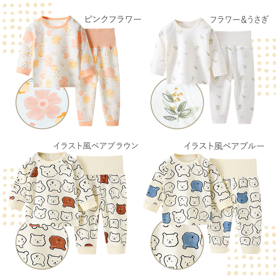 ・お腹が冷えないハイウエスト仕様のベビー&キッズ長袖パジャマ♪