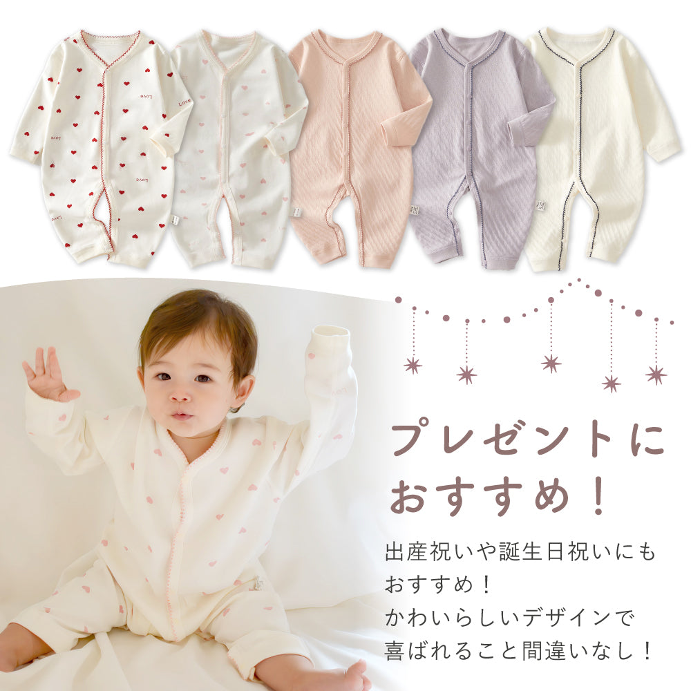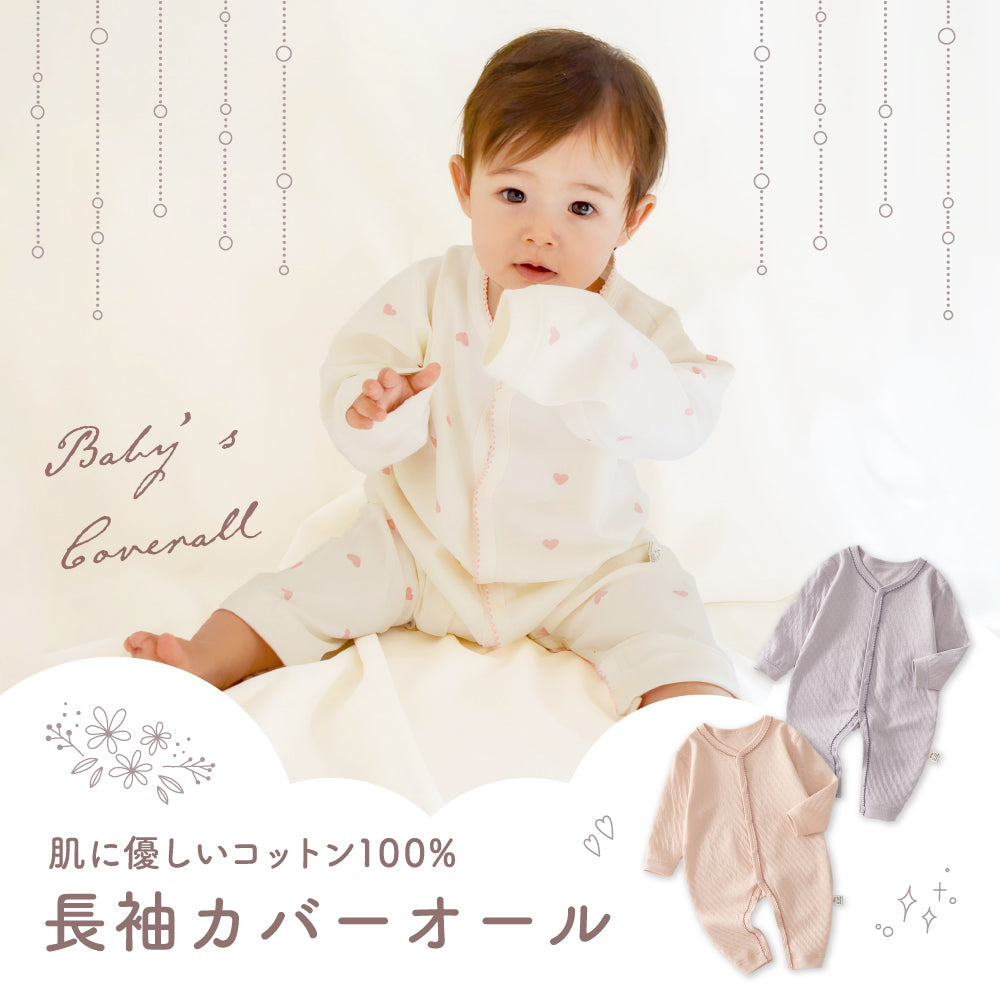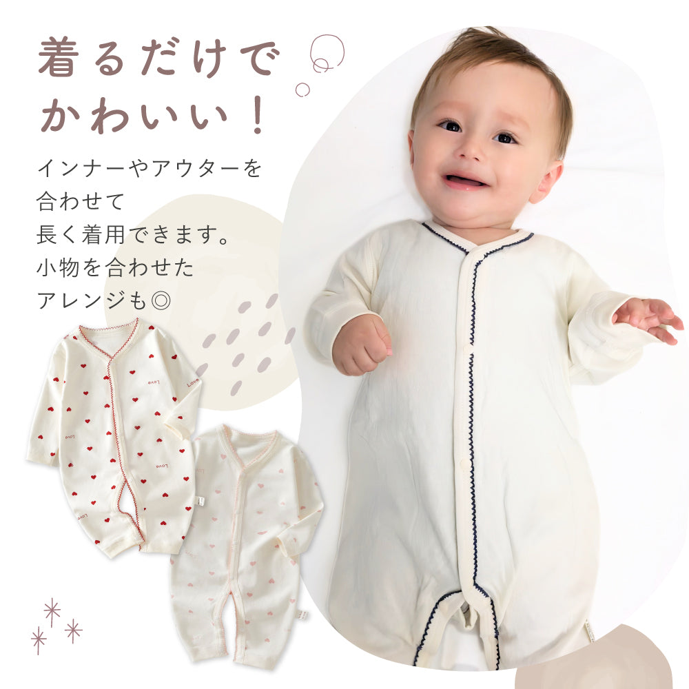 ・ナチュラルな色合いが可愛い長袖ロンパース