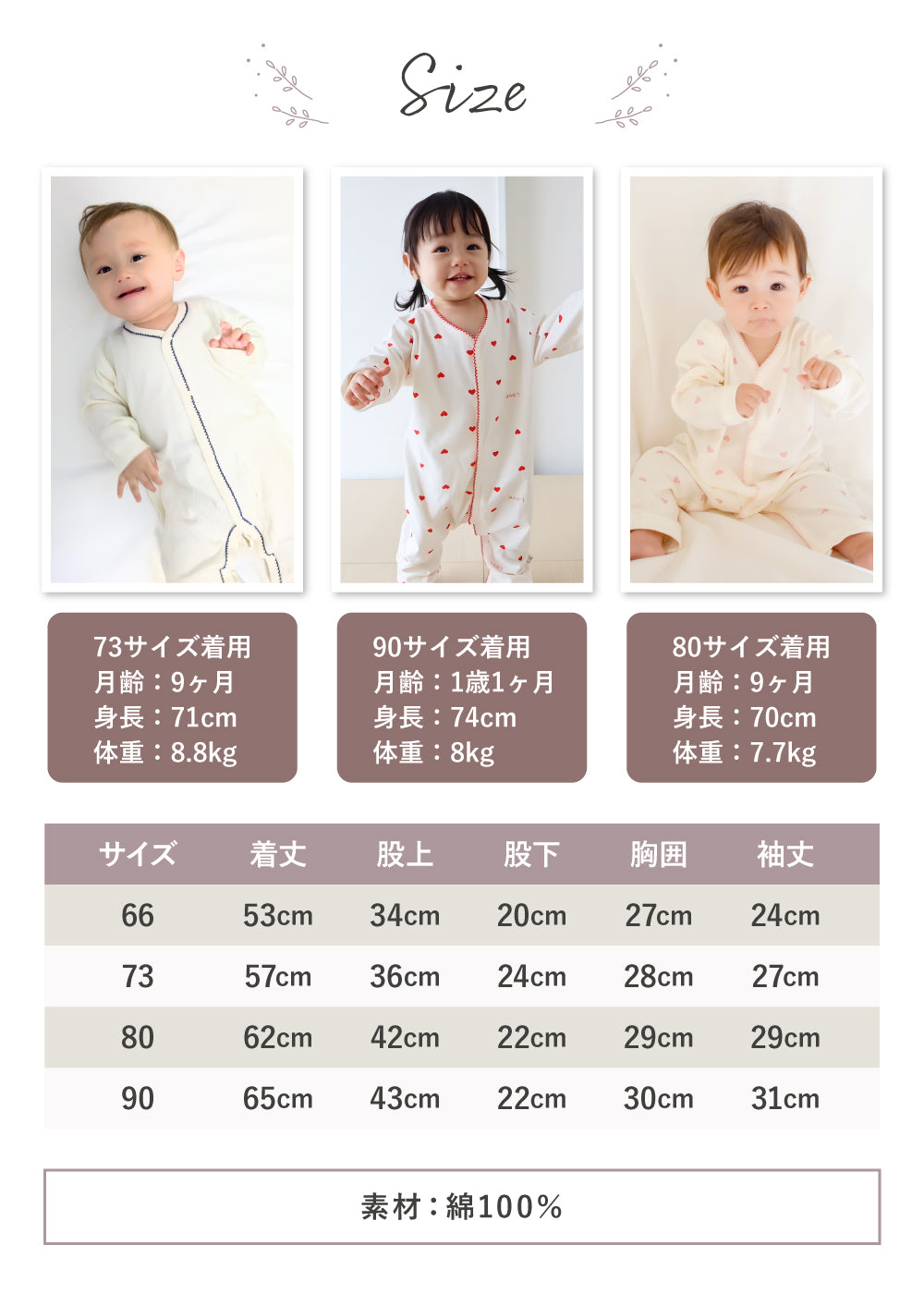 ・スナップボタンなのでおむつ替えも楽々できます。