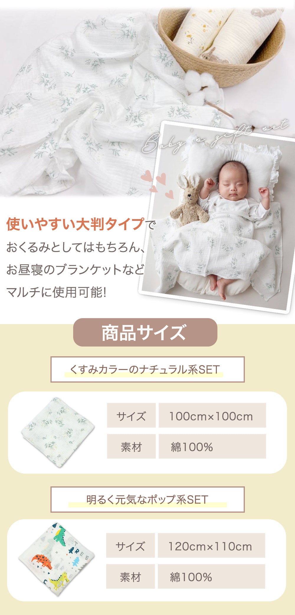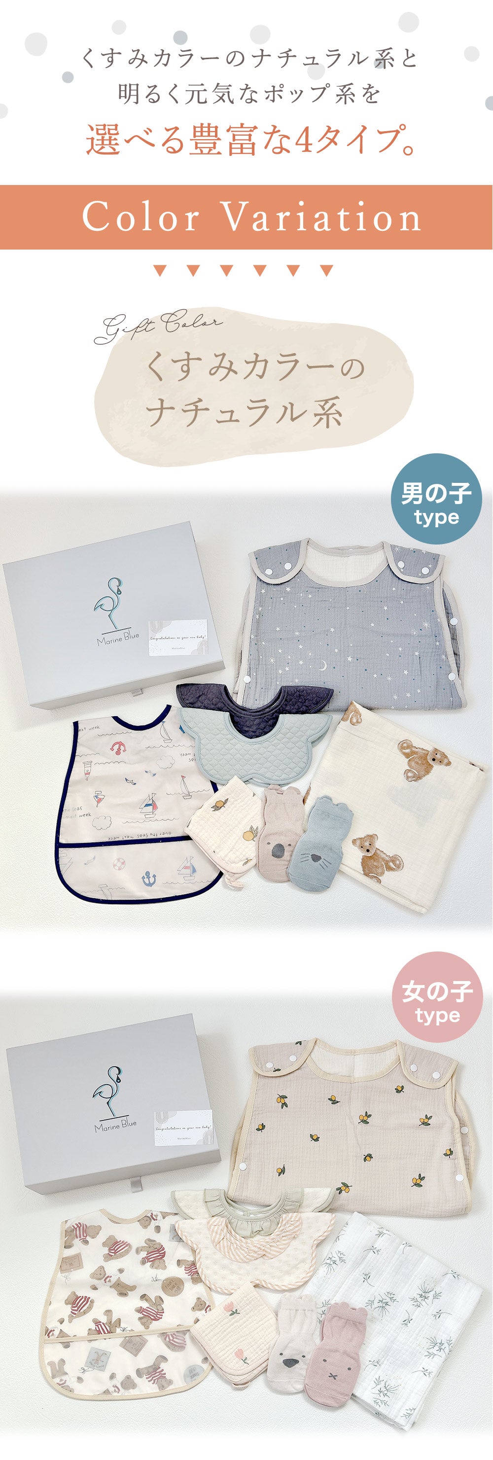 スリーパー・スタイ・おくるみ・靴下・お食事エプロン・ハンカチガーゼ・ギフトボックス