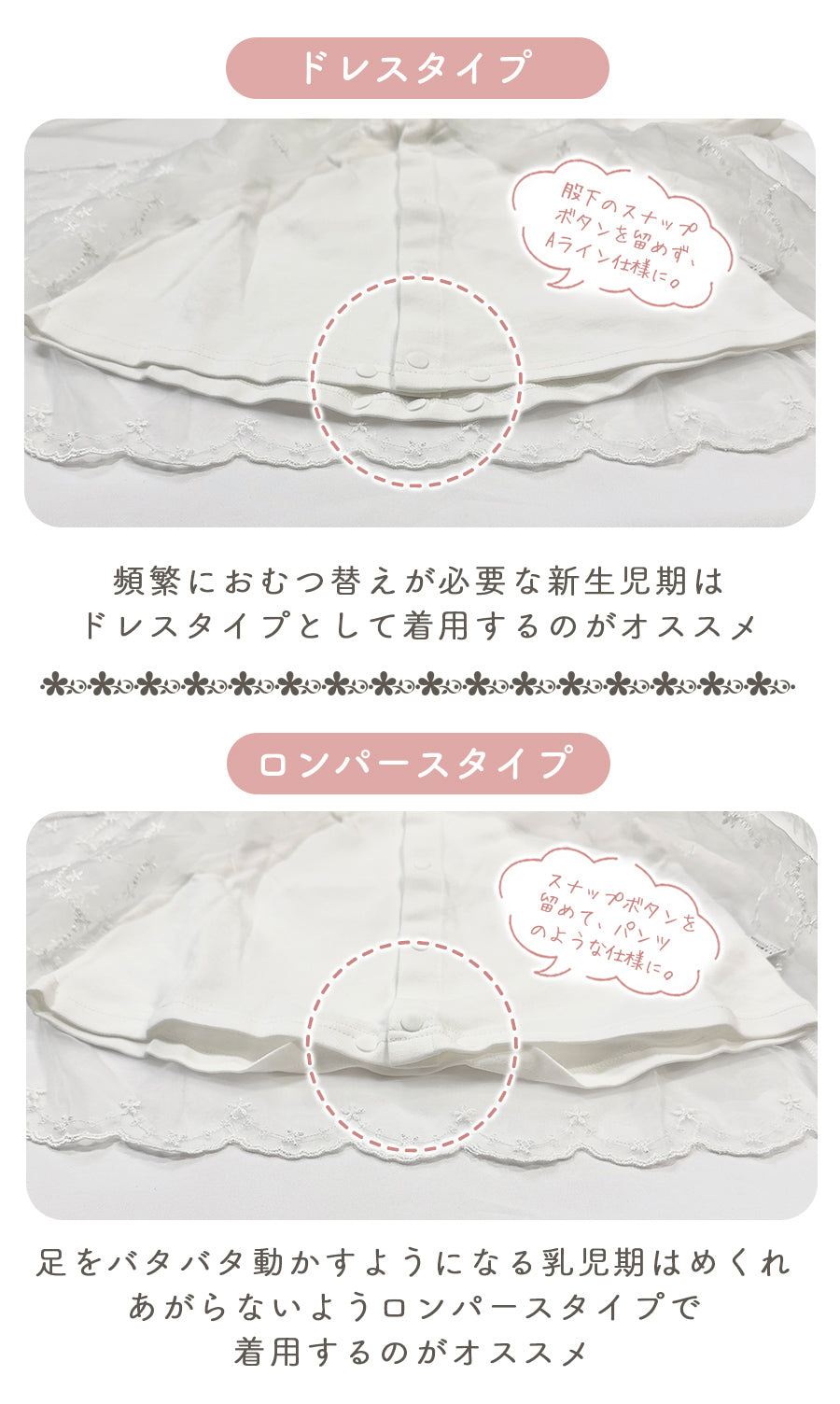 ・簡単2WAY!スナップボタンでドレスにもカバーオールにも