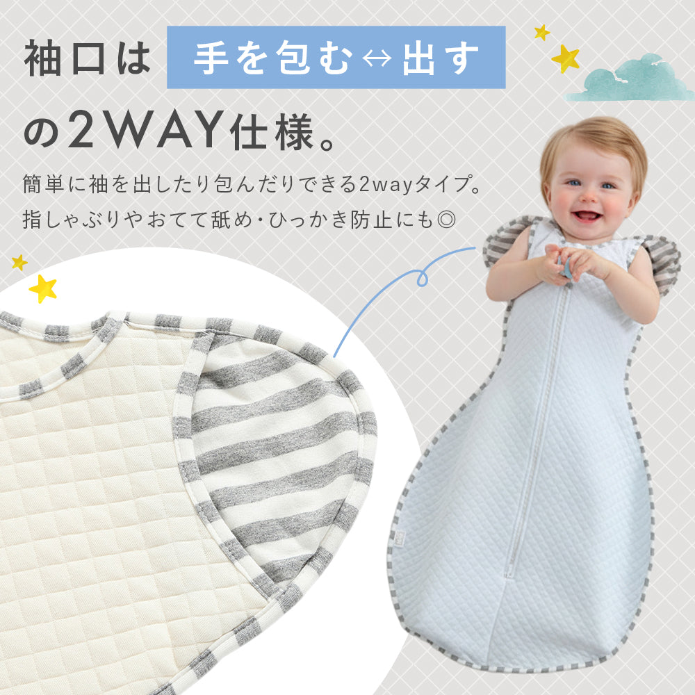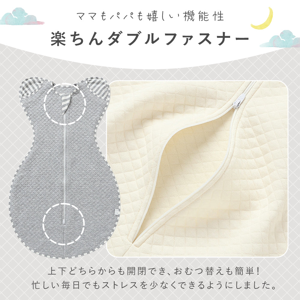 ・上下開閉ができるファスナーで、おくるみを着たままおむつ替えができます。
