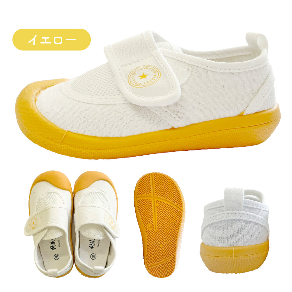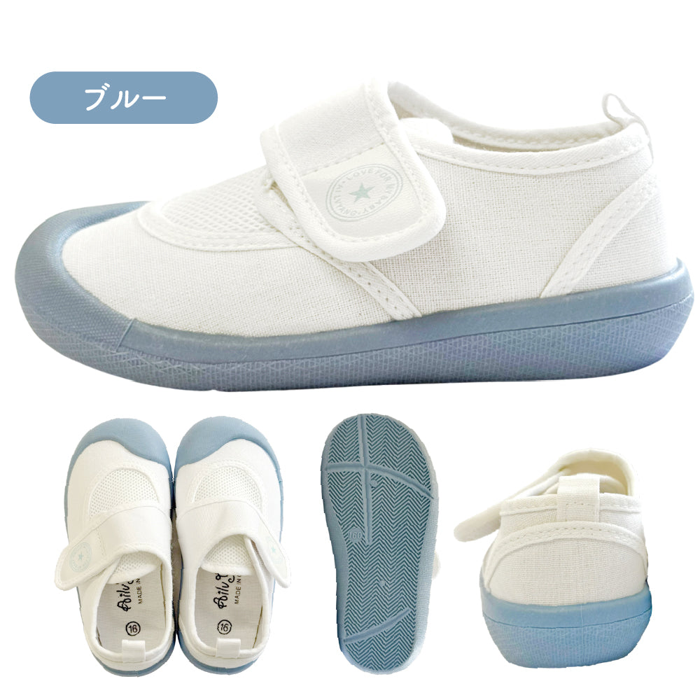 ・メッシュ素材を使用しているため、お子様の足もムレにくく快適に。汗をかきやすい季節にもサラッと履けます。