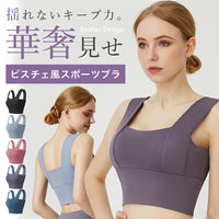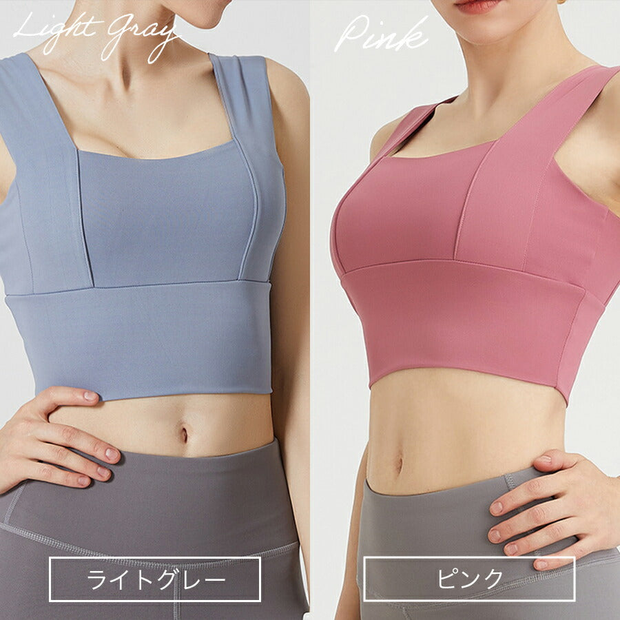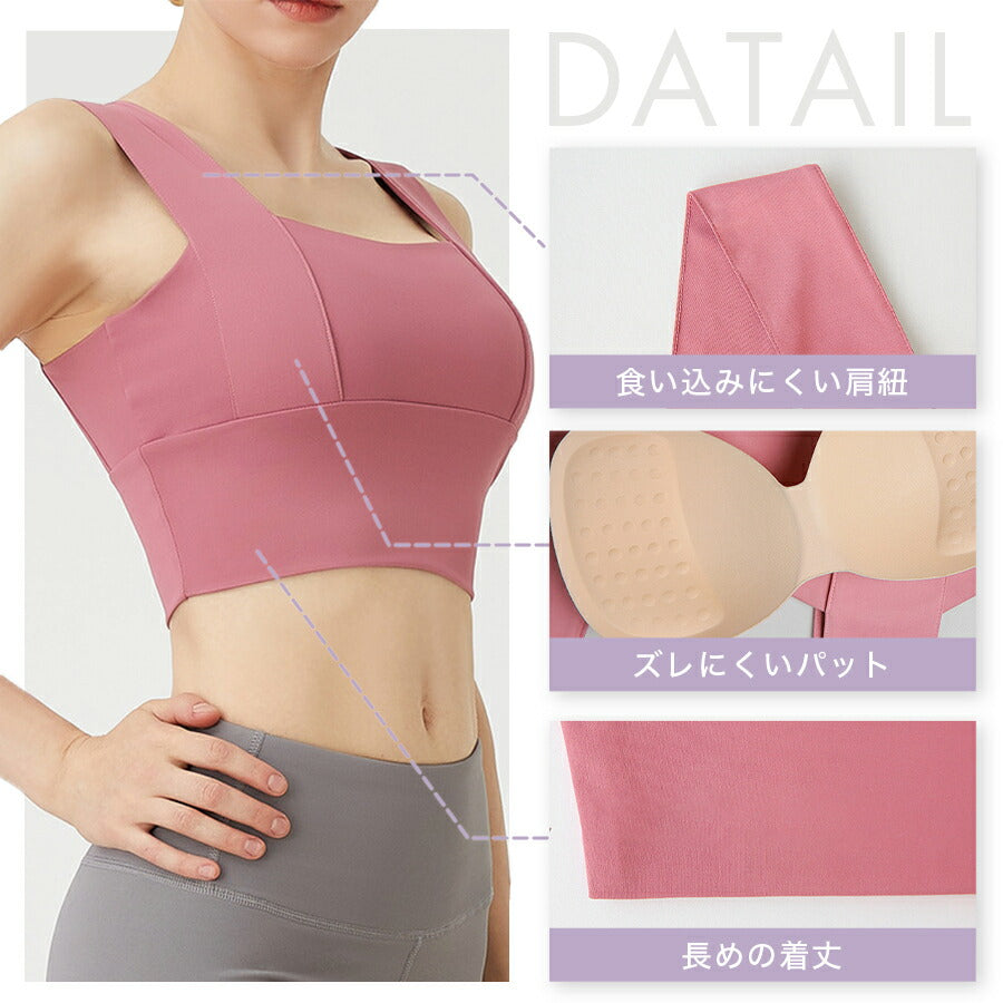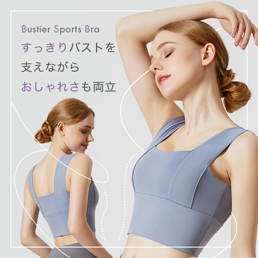 ・長めの着丈がかわいいビスチェ風デザインのスポーツブラ