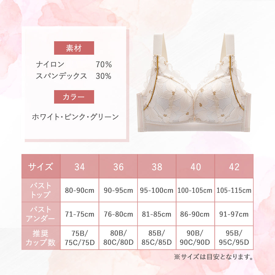 ・おしゃれな花柄レースでつけるたびに明るい気持ちになれるデザイン。