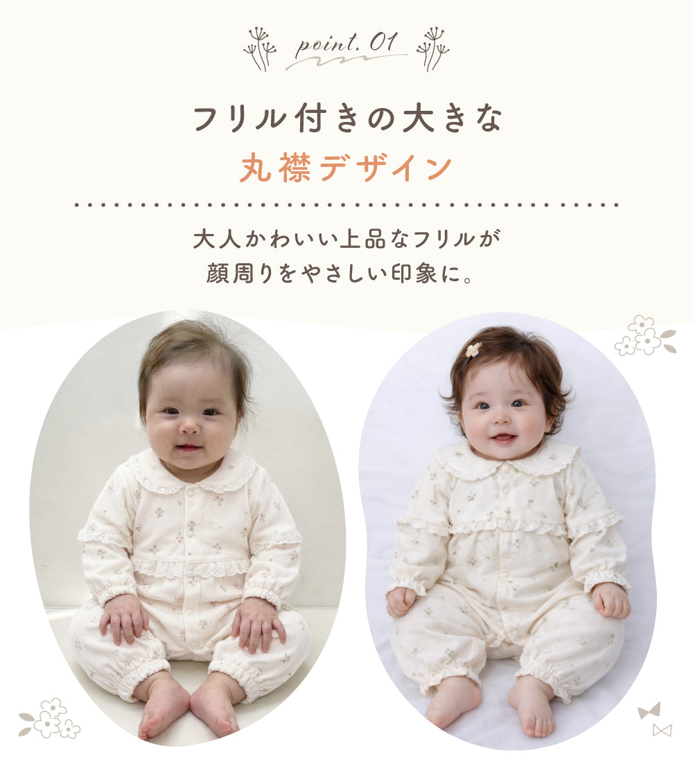 ・大きめの丸襟デザインで顔まわりがやさしい印象に