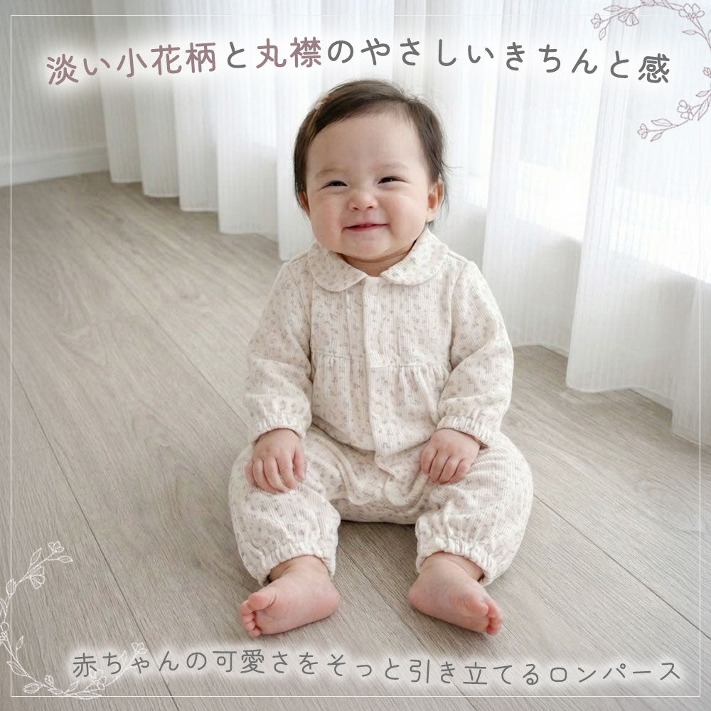 ・赤ちゃんの顔まわりをやさしく見せてくれる丸襟仕様
